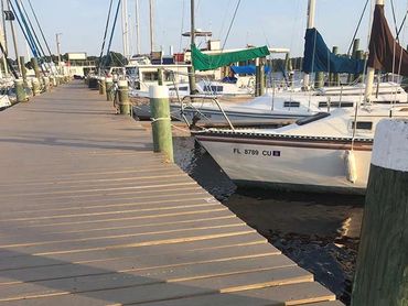 Our inlet facility protects your vessels from storm damage, turbulence, and rough waters. Water and electrical hook-ups are also available for each slip. We have replaced all boards throughout the pier with better and more durable materials. We also have a clean restroom available for customers.